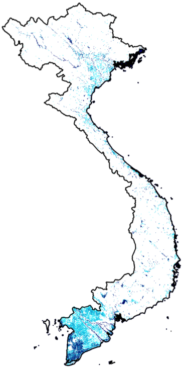 For all publications that use original products or derived maps and estimates, the source product should be referred to as “GLAD-UMD and SERVIR-Mekong, National annual tree canopy structure and surface water dynamics products, 2017”.
